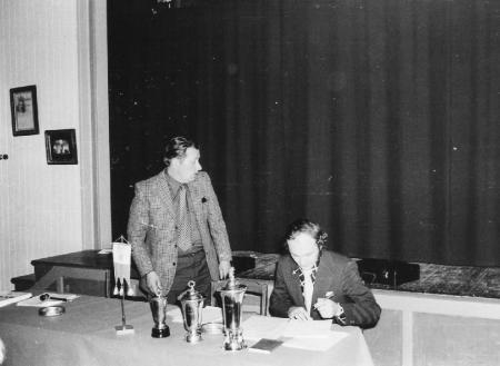 ÅUF vårmöte i Dalaskog den 20. 4. 1975. Ordförande Per Vilander öppnar mötet. På bild även ombudsman Bengt Westerlund.