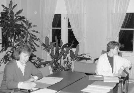 ÅUFs höstmöte i Pargas den 8.11 1990. På bild viceordförande Gunn Fihlman samt nyvalda ordförande Carola Bryggman.