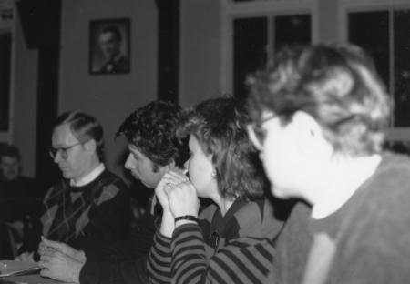 FSUs höstmöte på Framnäs dem 17-18.11 1990. Bengt Häggman, Magnus Jansson, Fredrika Henriksson och Carola Bryggman på bild.