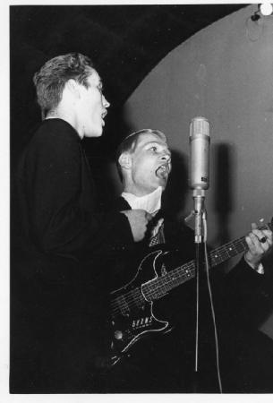 Ingvar Bergman och Tor Björn Karlsson från Åbo sjunger på Kimitos talangjakt. År okänt.