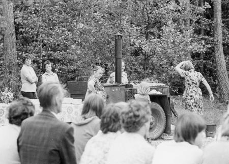 Samling kring tältköket. Läsförhörskalaset 1976.