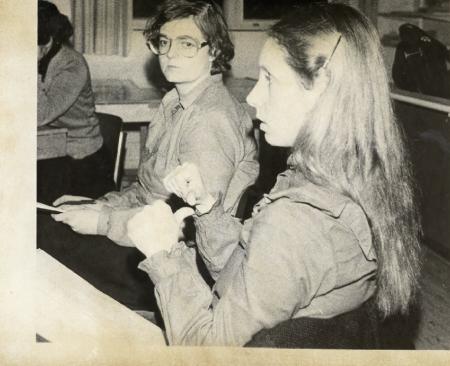 Ellinor Silius och Clara Pinanen på barnledarträff i Pargas år 1982.