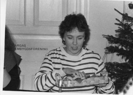 Ingeborg Spiiks avslutningsfest i Kulturbrinken i Pargas år 1983. På bild ÅKRs kanslist Susanne Cederlöf.