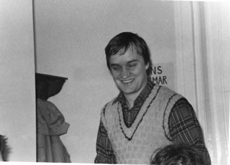 Ingeborg Spiiks avslutningsfest i Kulturbrinken i Pargas år 1983. På bild SSFs studiesekreterare Folke Öhman.