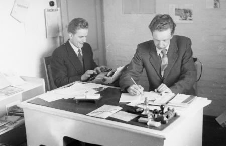 Georg Heichfolk och Erik Henriksson i ÅUFs kansli år 1955